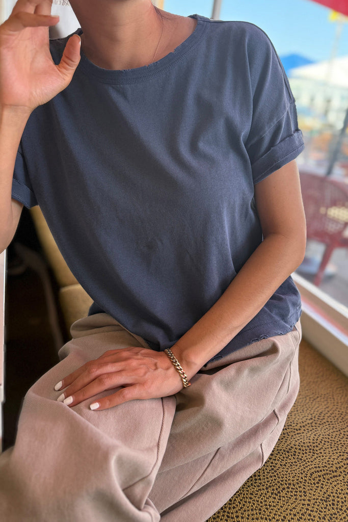 The perfect crop tee to pair with all your high waisted bottoms is here to stay. Fille Tee is the exact length that you have been searching for to realize your summer outfit dreams. With a light vintage distressed detail and garment wash, she will give you that oh so effortless look.