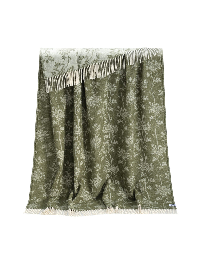 Roses Moss Green Recycled Wool Throw