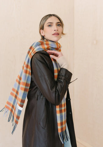 Lambswool Oversized Scarf in Blue Check