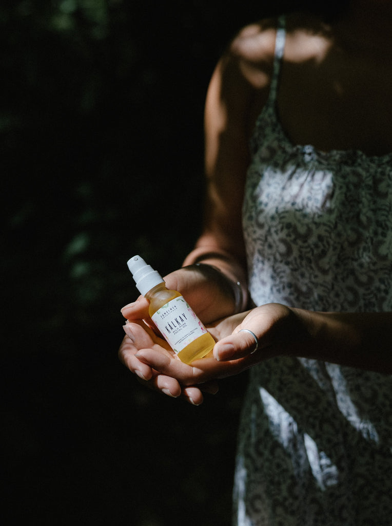 Instructions: Gently massage one to two pumps of the oil onto clean, dry skin. Can be used in place of or in combination with a moisturizer. Gentle enough for babies’ skin and can be added to a bath for aromatic soothing.
