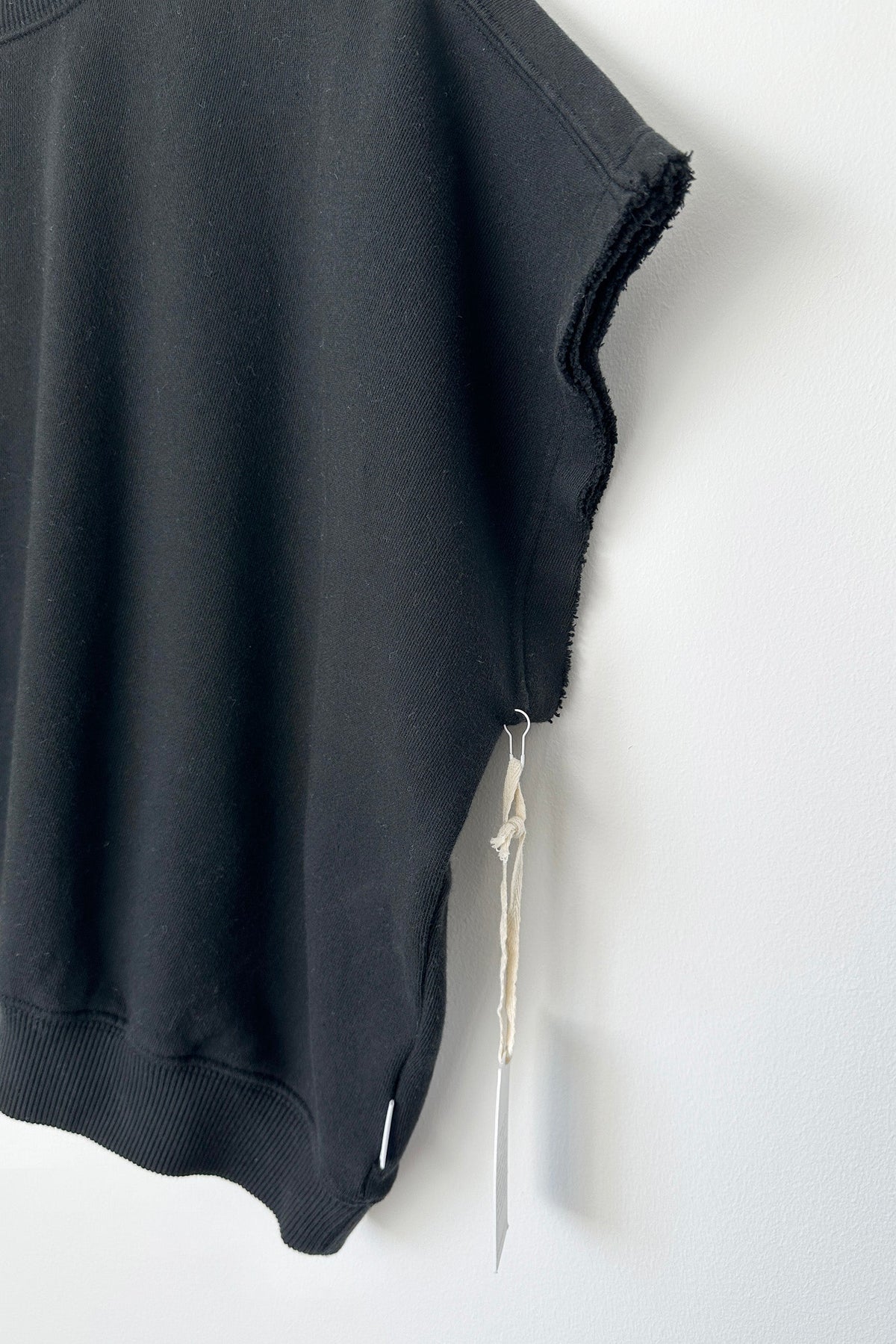 Made of 100% softest cotton french terry, it features a boxy yet relaxed fit with a raw hem at the sleeves and extended shoulder—think Jeanne Tee's elevated older sister. A thick ribbed waist hem offer an elevated element.